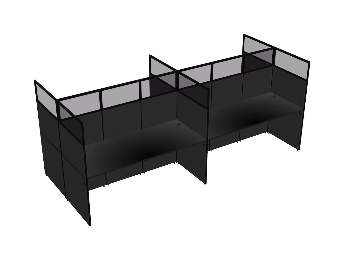 Black Shared Rectangular Office Cubicle Panel System For 4 Persons