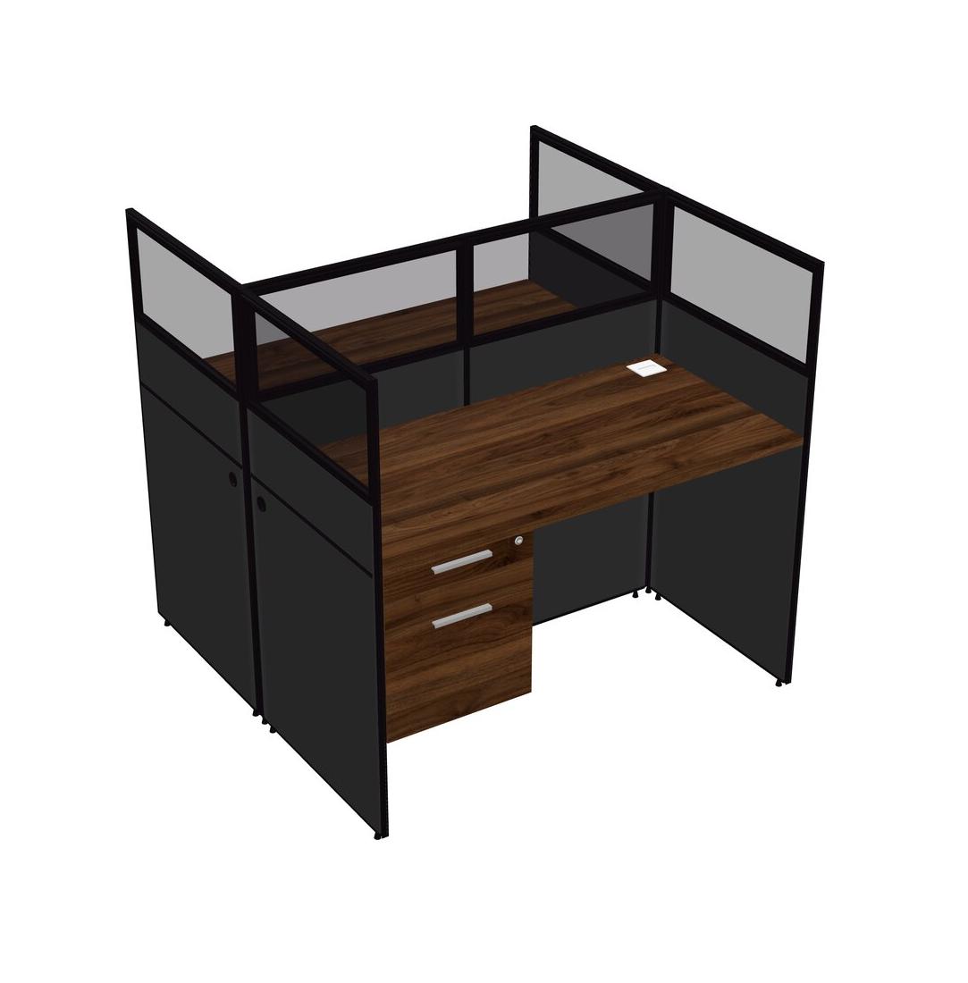 Columbia Walnut Shared Rectangular Office Cubicle Panel System With Hanging Drawers For 2 Persons