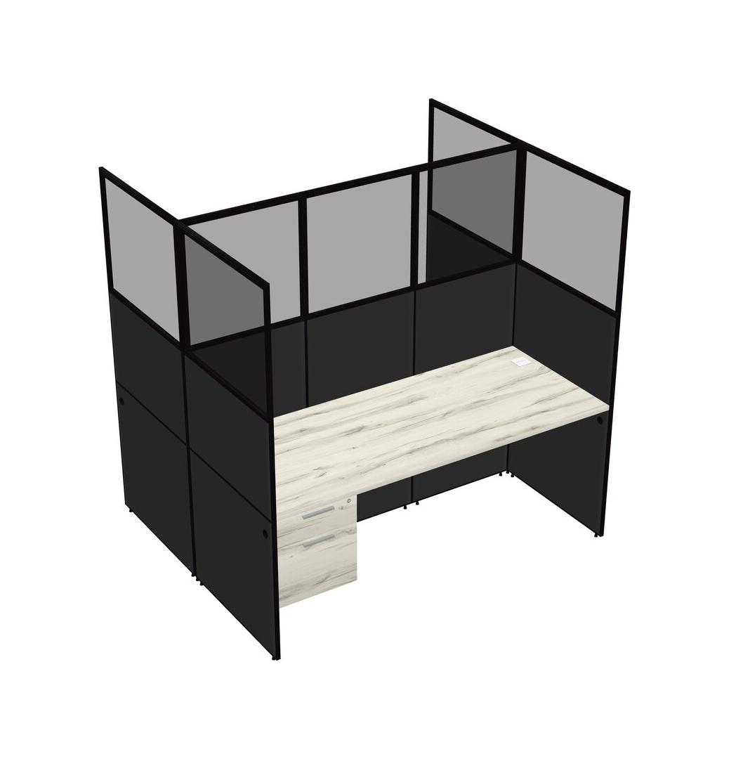 Heinne Holz Shared Rectangular Office Cubicle Panel System With Hanging Drawers For 2 Persons