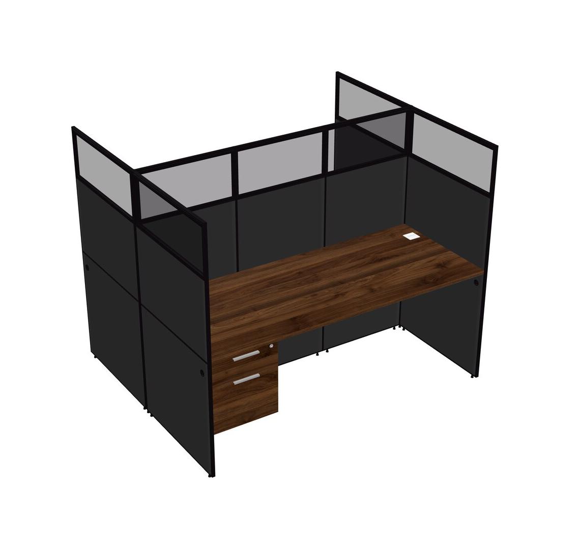 Columbia Walnut Shared Rectangular Office Cubicle Panel System With Hanging Drawers For 2 Persons
