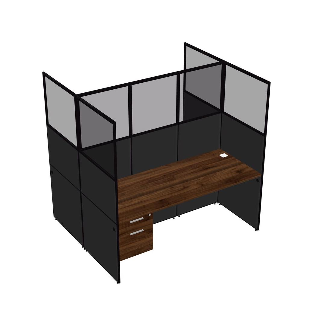Columbia Walnut Shared Rectangular Office Cubicle Panel System With Hanging Drawers For 2 Persons
