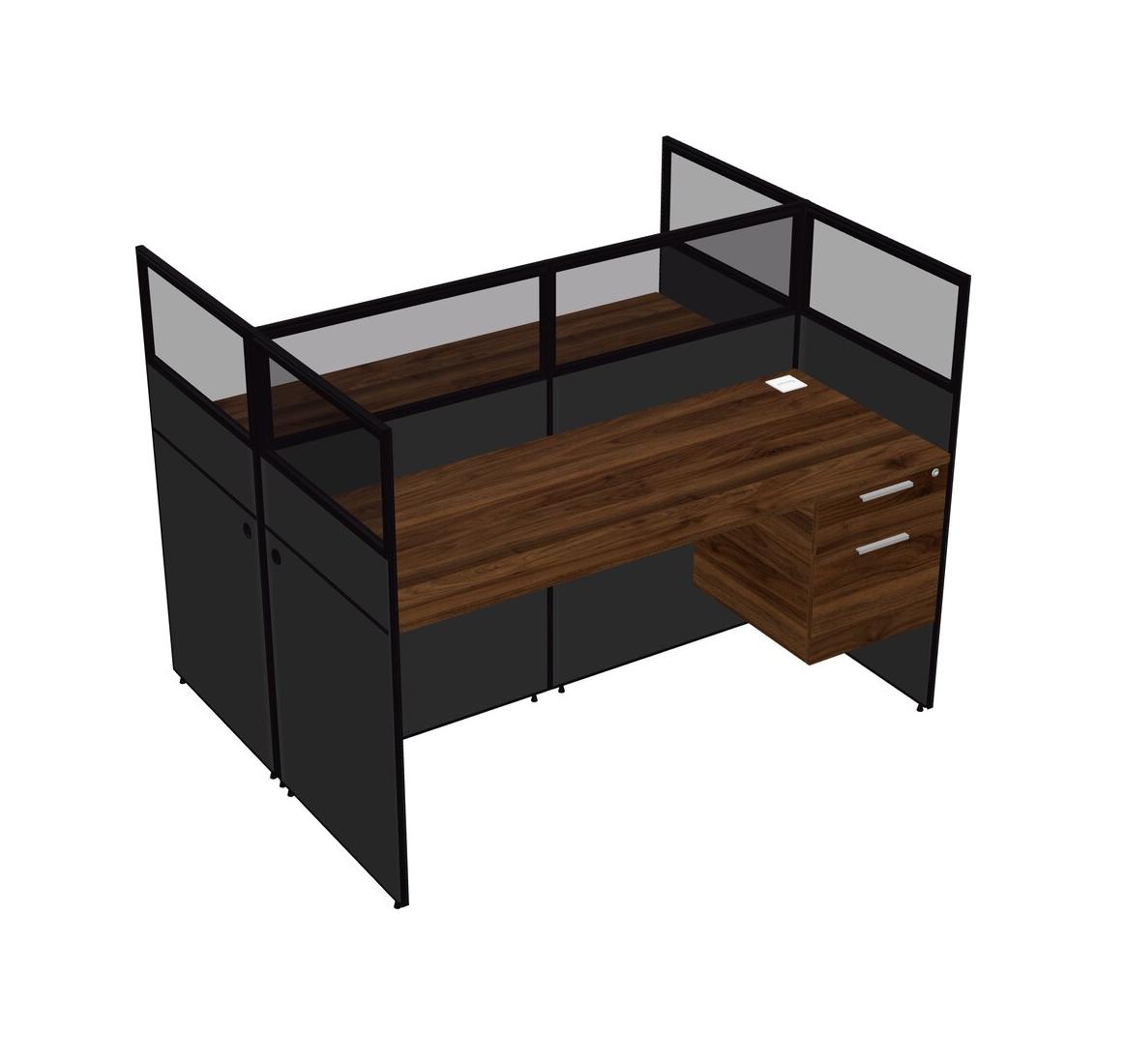 Columbia Walnut Shared Rectangular Office Cubicle Panel System With Hanging Drawers For 2 Persons
