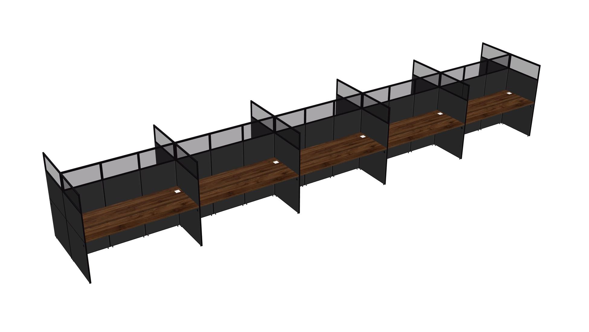 Columbia Walnut Shared Rectangular Office Cubicle Panel System For 10 Persons