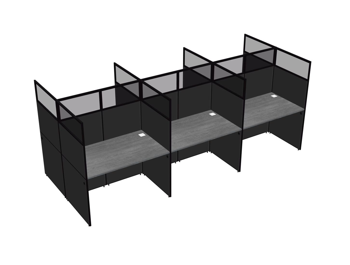 Grey Shared Rectangular Office Cubicle Panel System For 6 Persons