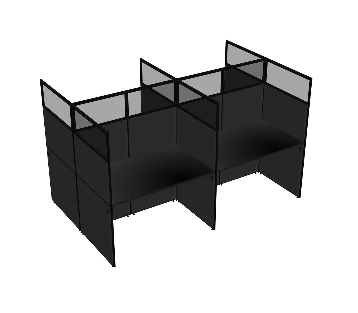 Black Shared Rectangular Office Cubicle Panel System For 4 Persons