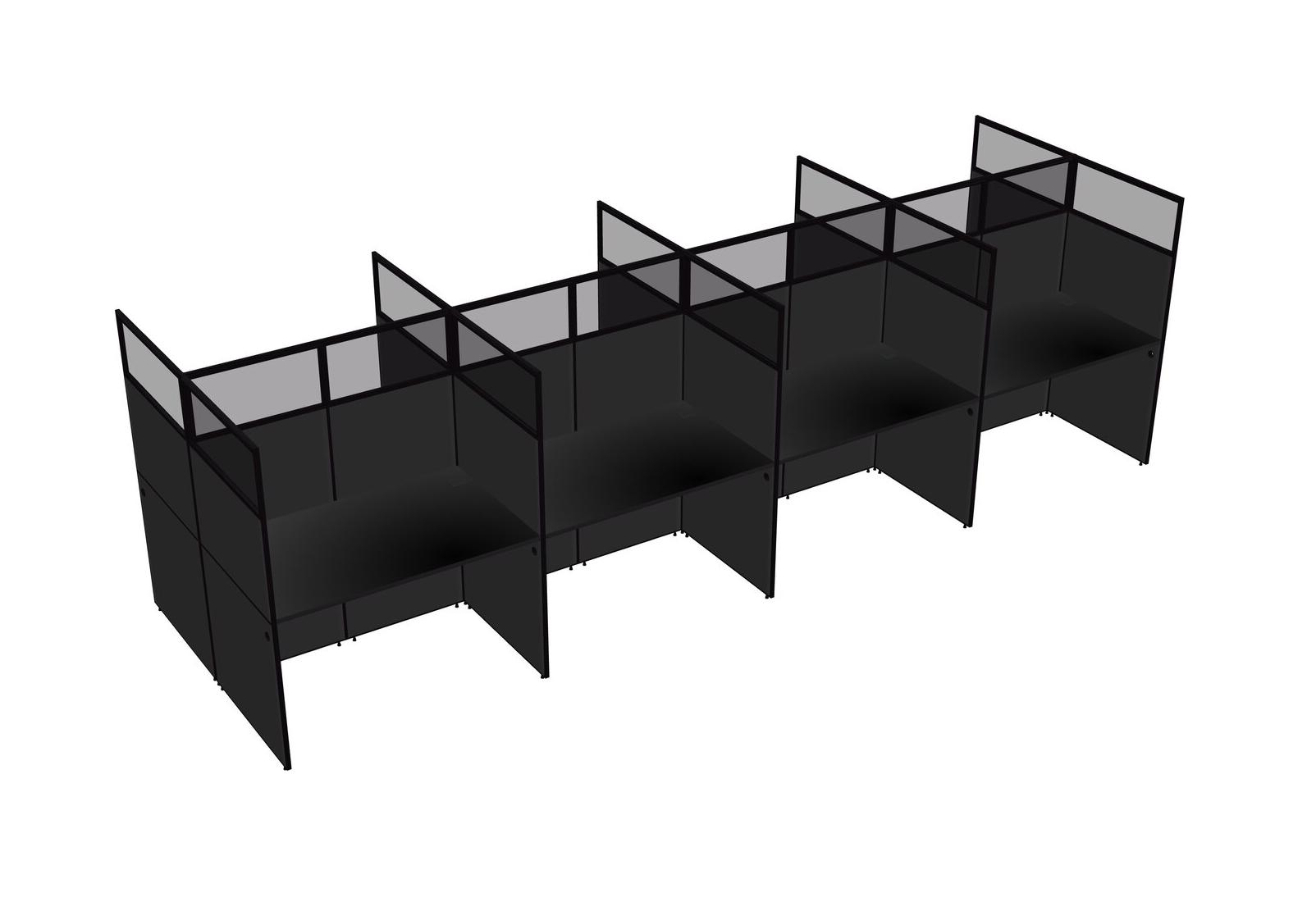 Black Shared Rectangular Office Cubicle Panel System For 8 Persons