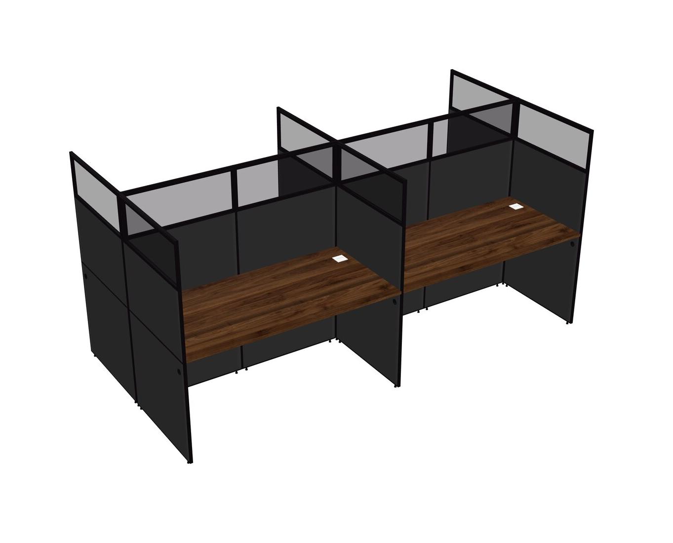 Columbia Walnut Shared Rectangular Office Cubicle Panel System For 4 Persons