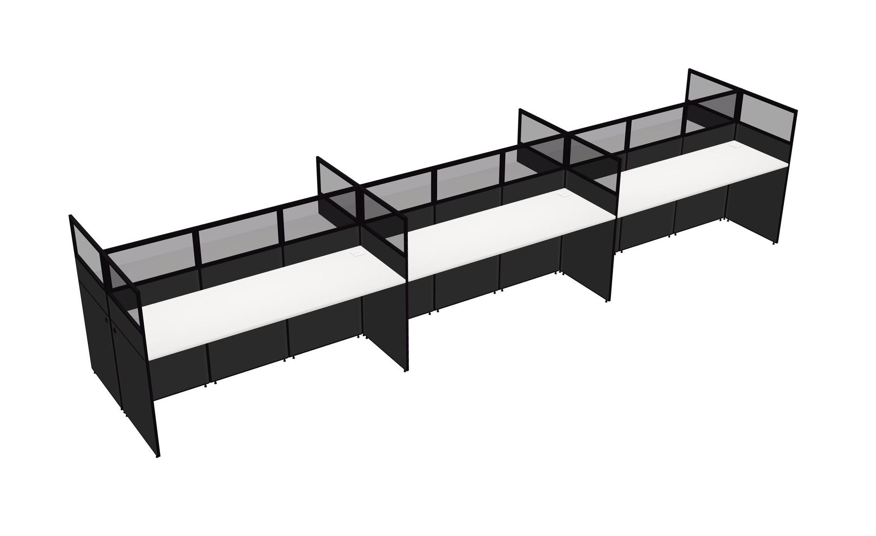 White Shared Rectangular Office Cubicle Panel System For 6 Persons