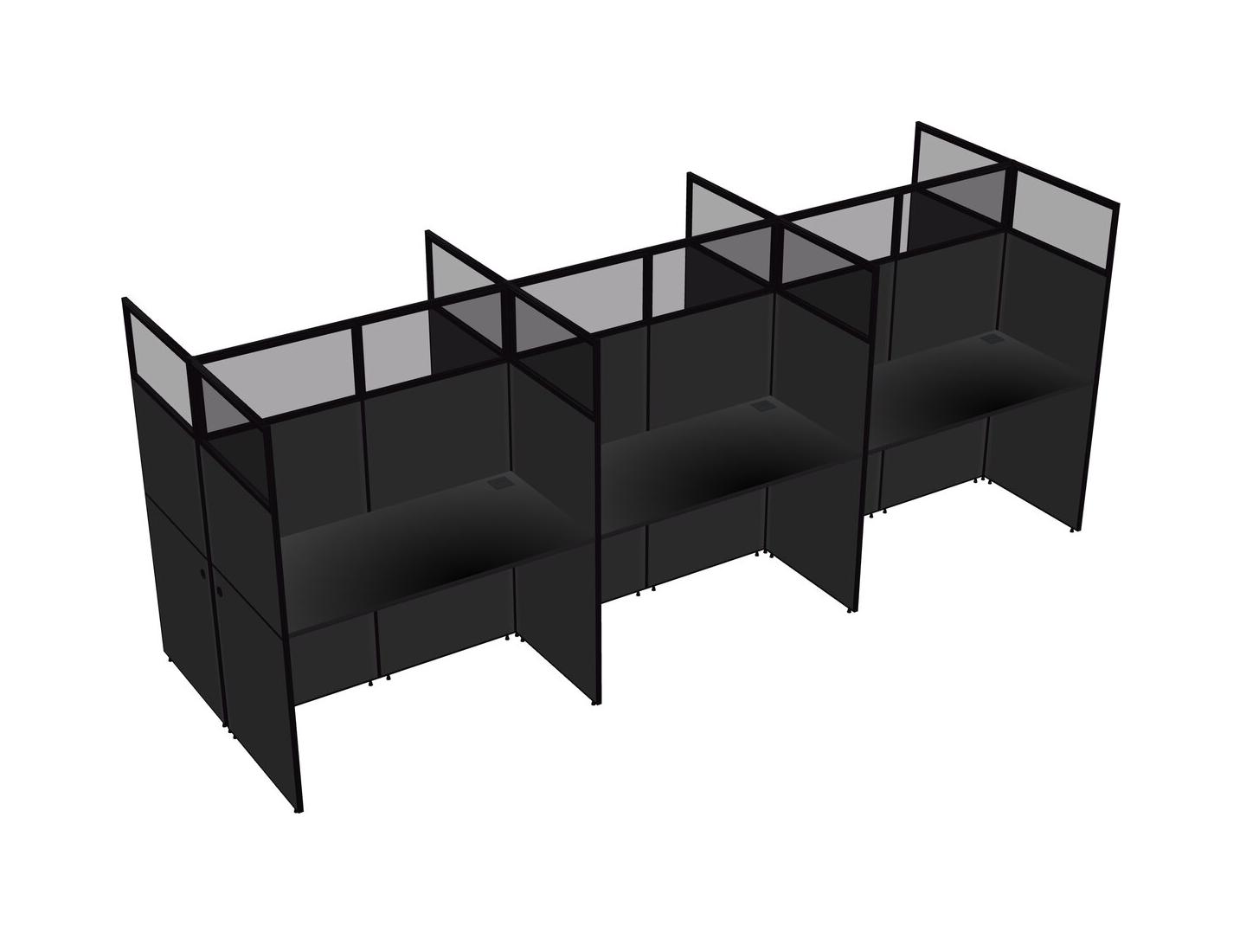 Black Shared Rectangular Office Cubicle Panel System For 6 Persons