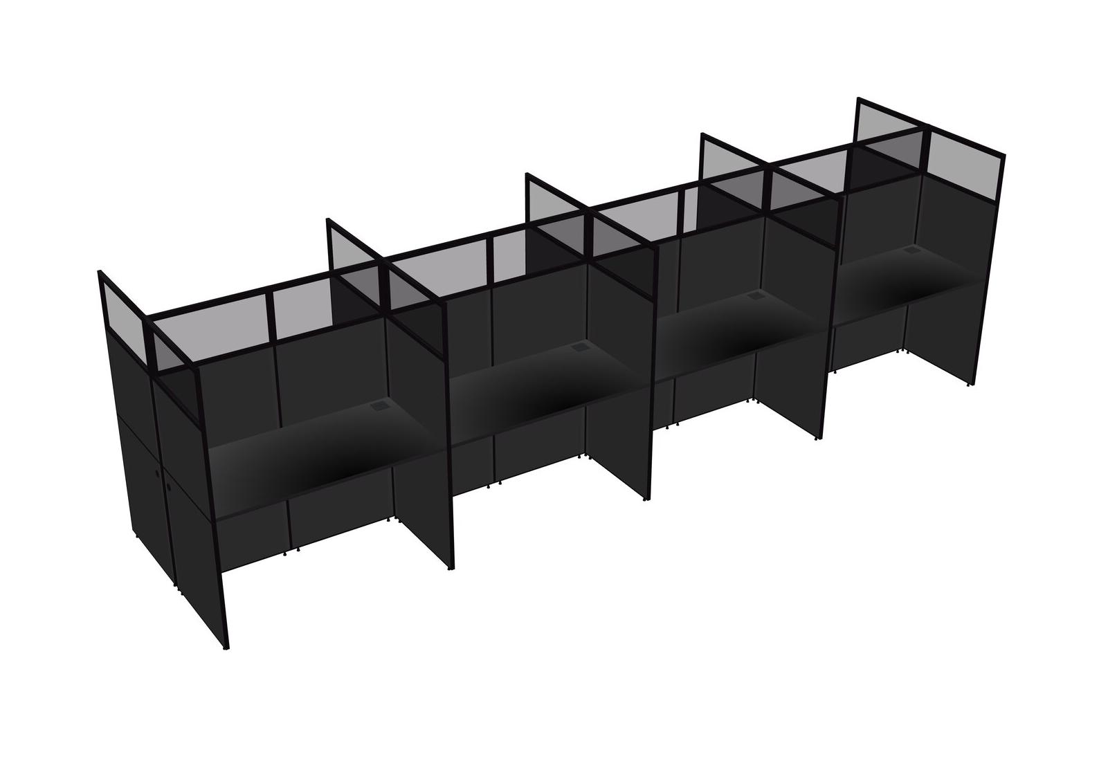 Black Shared Rectangular Office Cubicle Panel System For 8 Persons