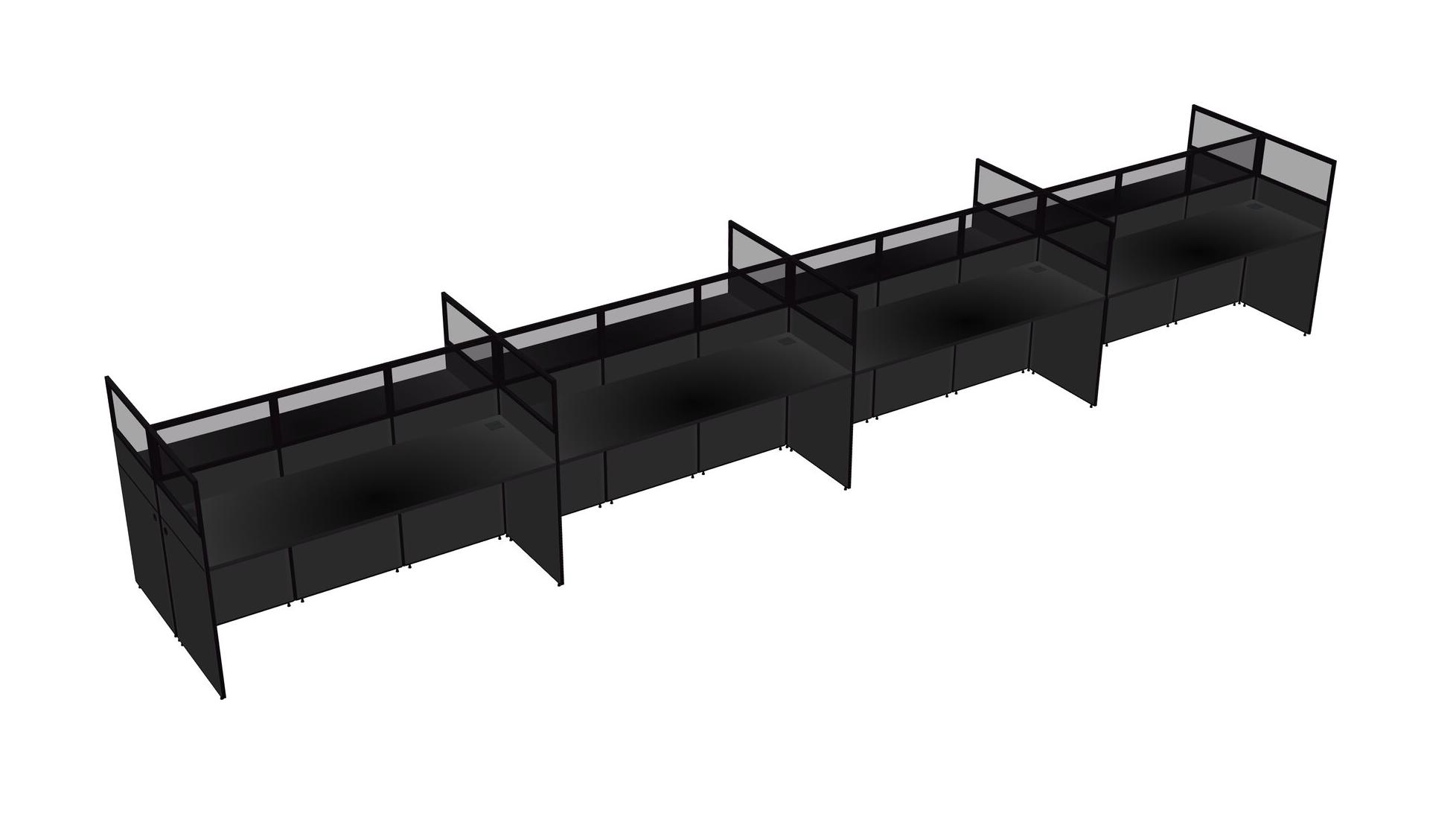 Black Shared Rectangular Office Cubicle Panel System For 8 Persons