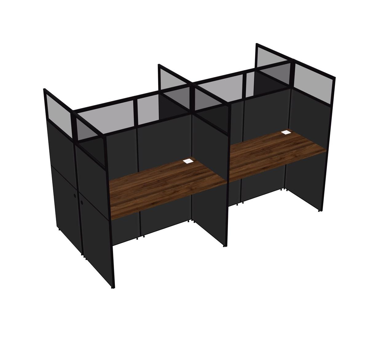 Columbia Walnut Shared Rectangular Office Cubicle Panel System For 4 Persons