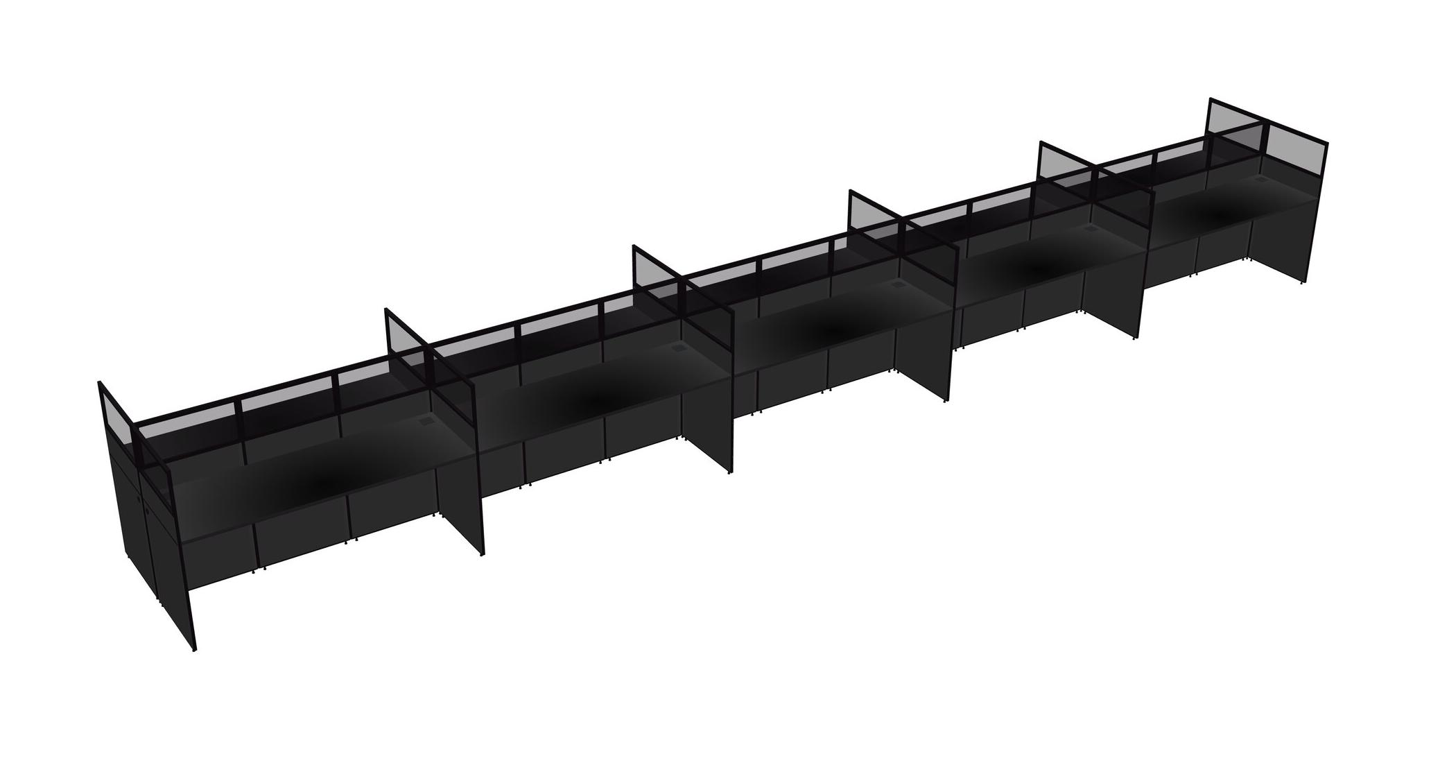 Black Shared Rectangular Office Cubicle Panel System For 10 Persons