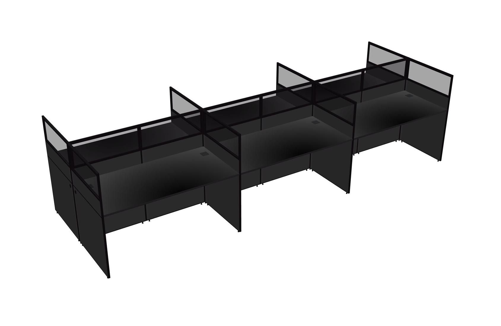 Black Shared Rectangular Office Cubicle Panel System For 6 Persons