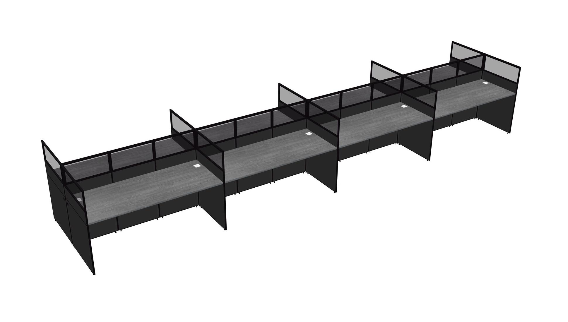 Grey Shared Rectangular Office Cubicle Panel System For 8 Persons