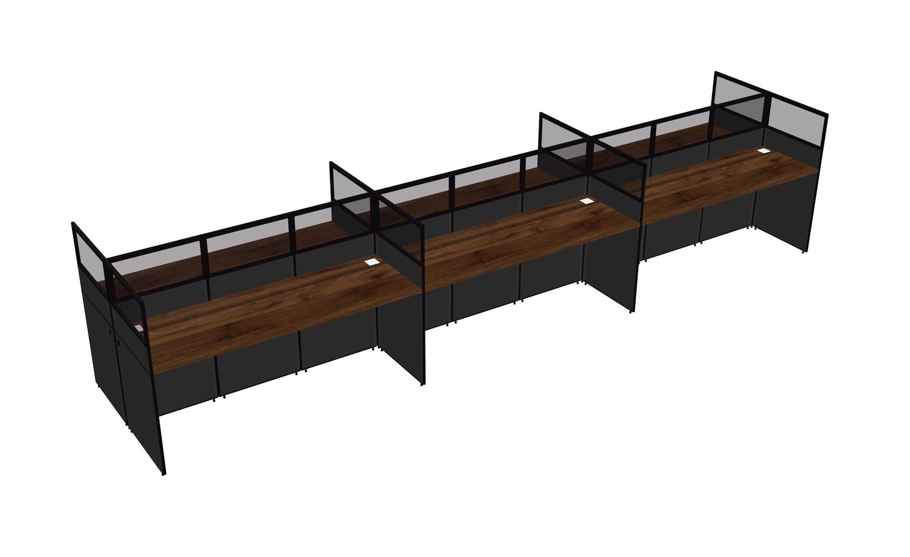 Columbia Walnut Shared Rectangular Office Cubicle Panel System For 6 Persons