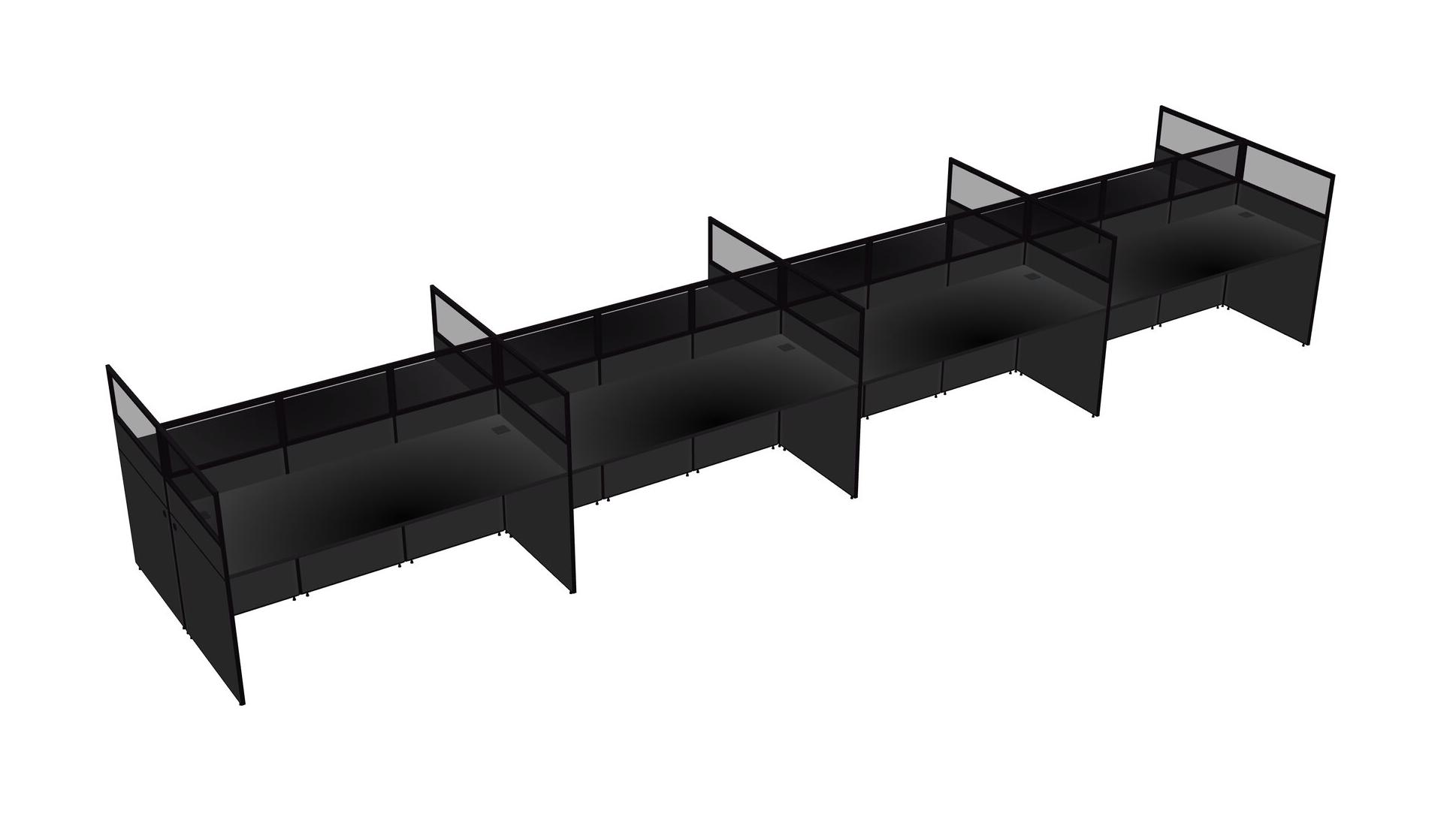Black Shared Rectangular Office Cubicle Panel System For 8 Persons