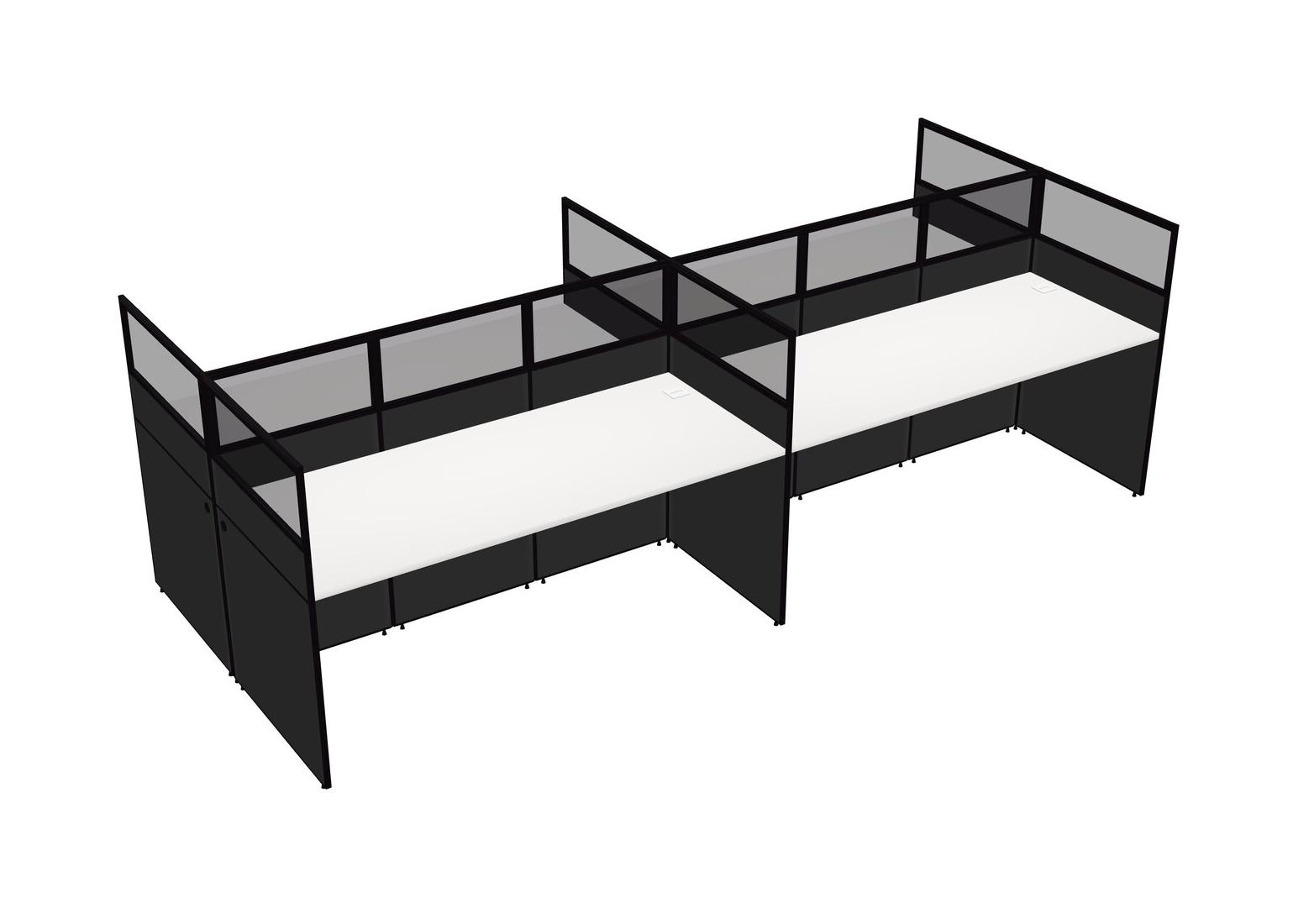 White Shared Rectangular Office Cubicle Panel System For 4 Persons