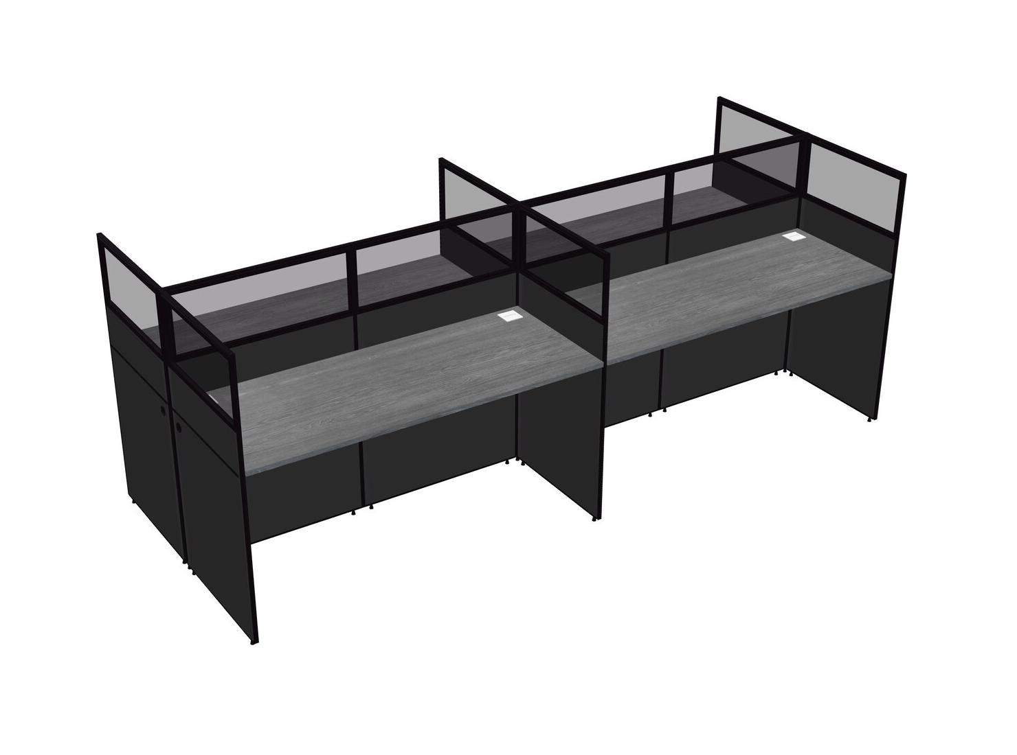 Grey Shared Rectangular Office Cubicle Panel System For 4 Persons