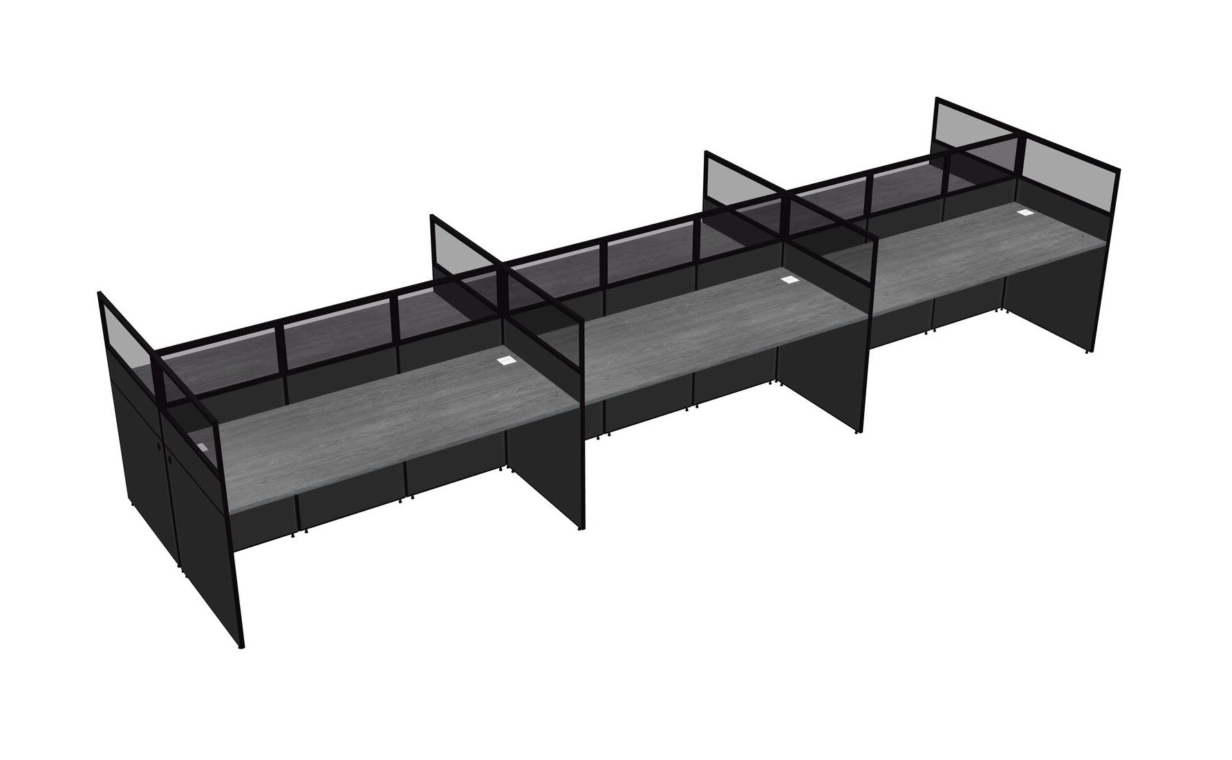 Grey Shared Rectangular Office Cubicle Panel System For 6 Persons