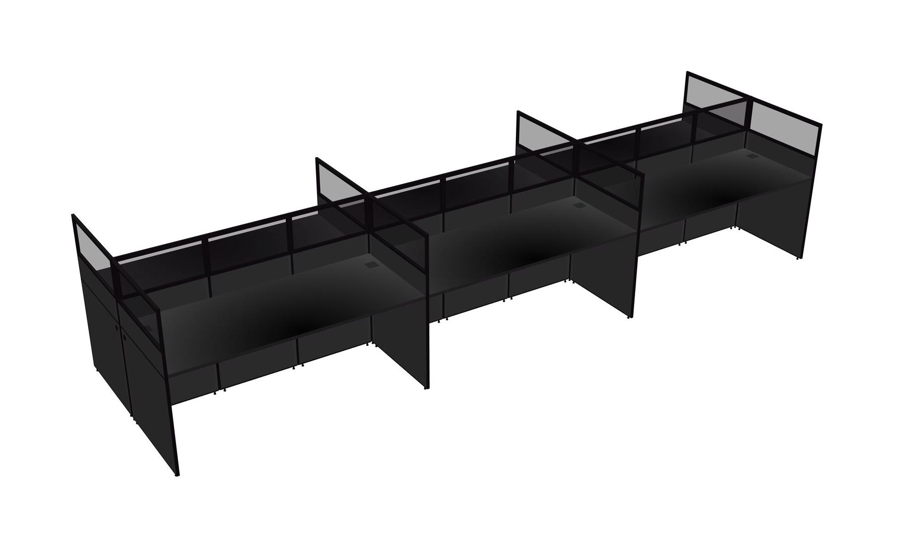 Black Shared Rectangular Office Cubicle Panel System For 6 Persons