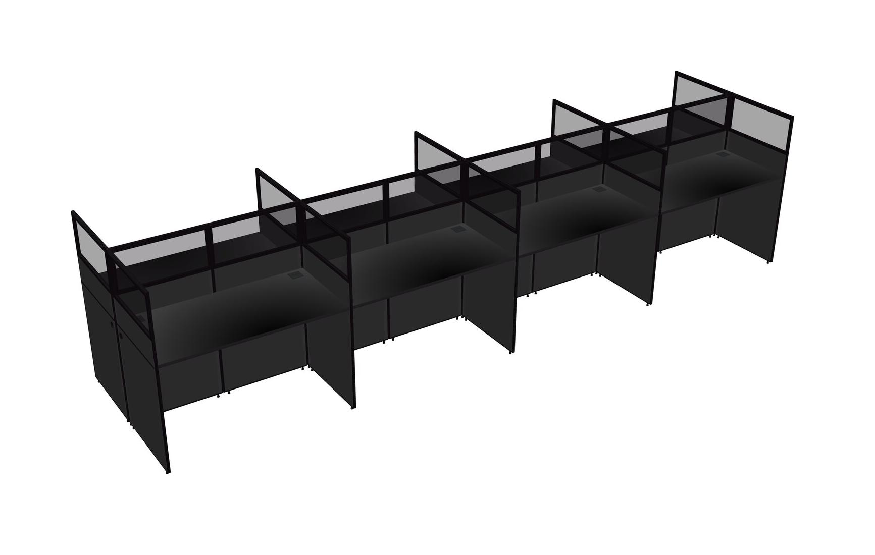 Black Shared Rectangular Office Cubicle Panel System For 8 Persons