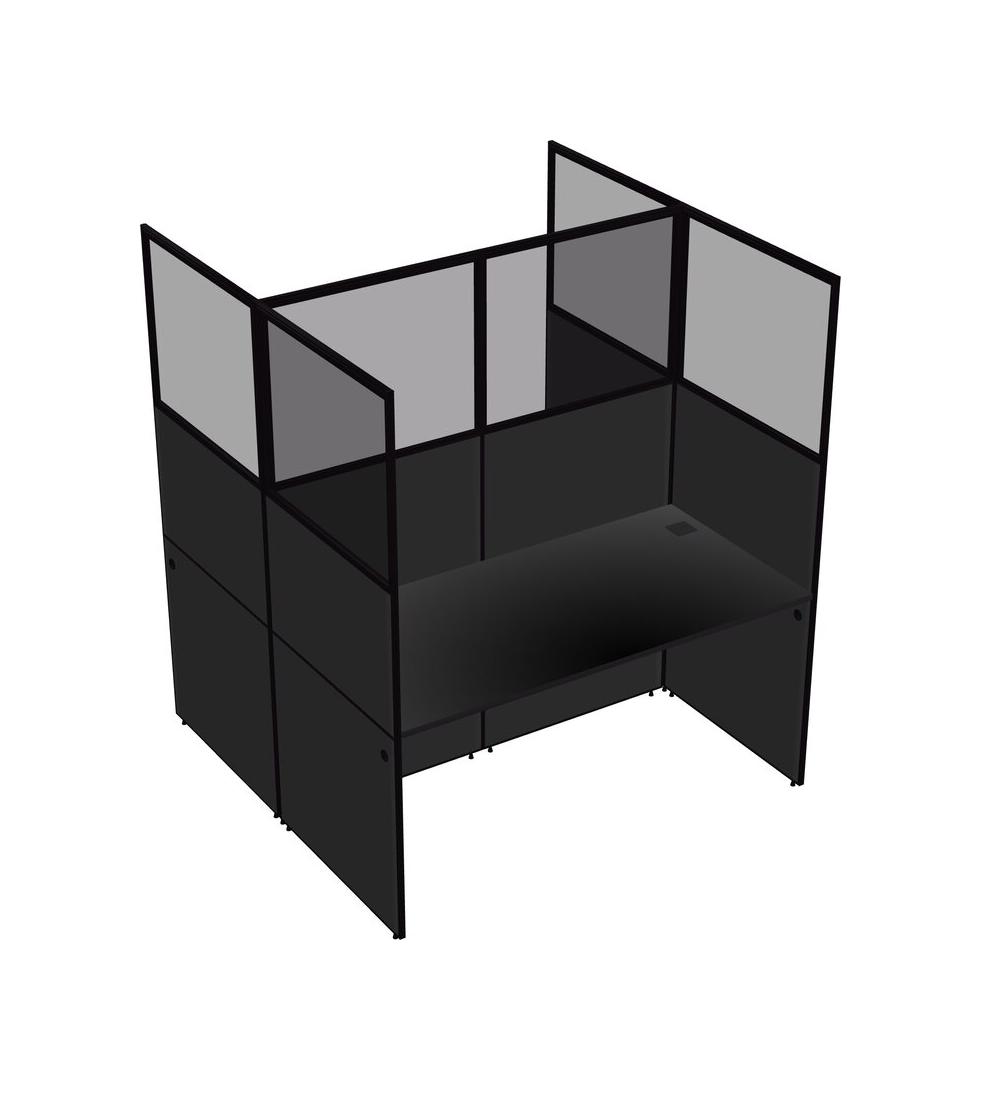 Black Shared Rectangular Office Cubicle Panel System For 2 Persons