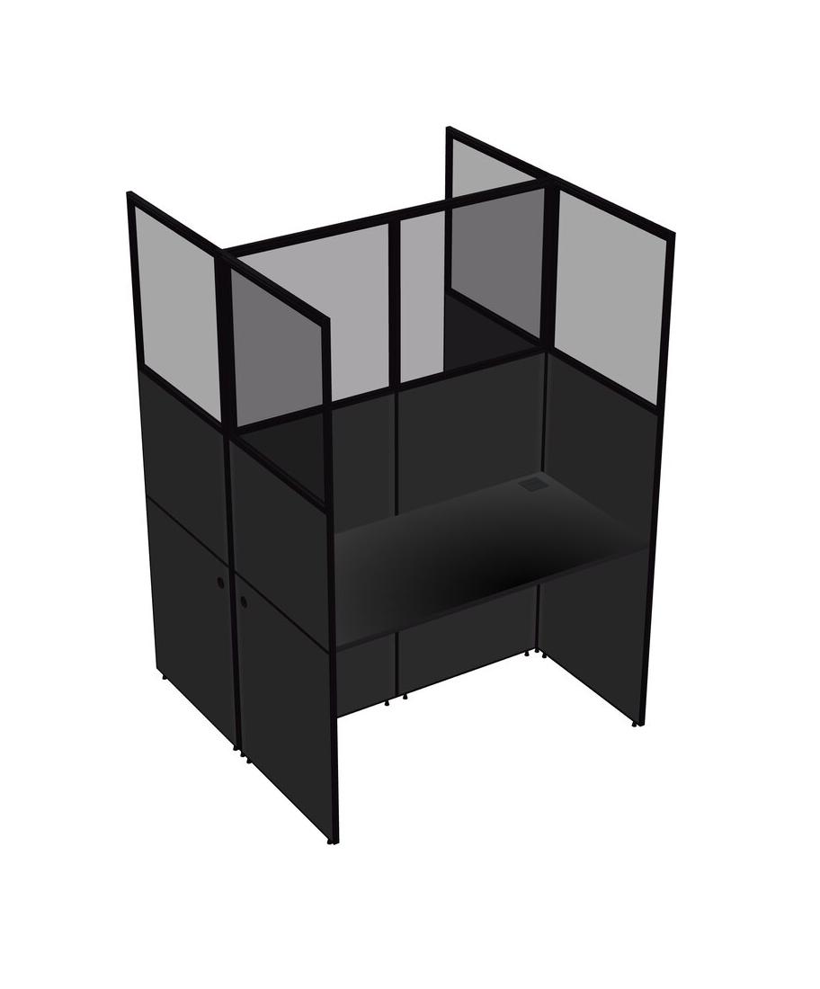 Black Shared Rectangular Office Cubicle Panel System For 2 Persons