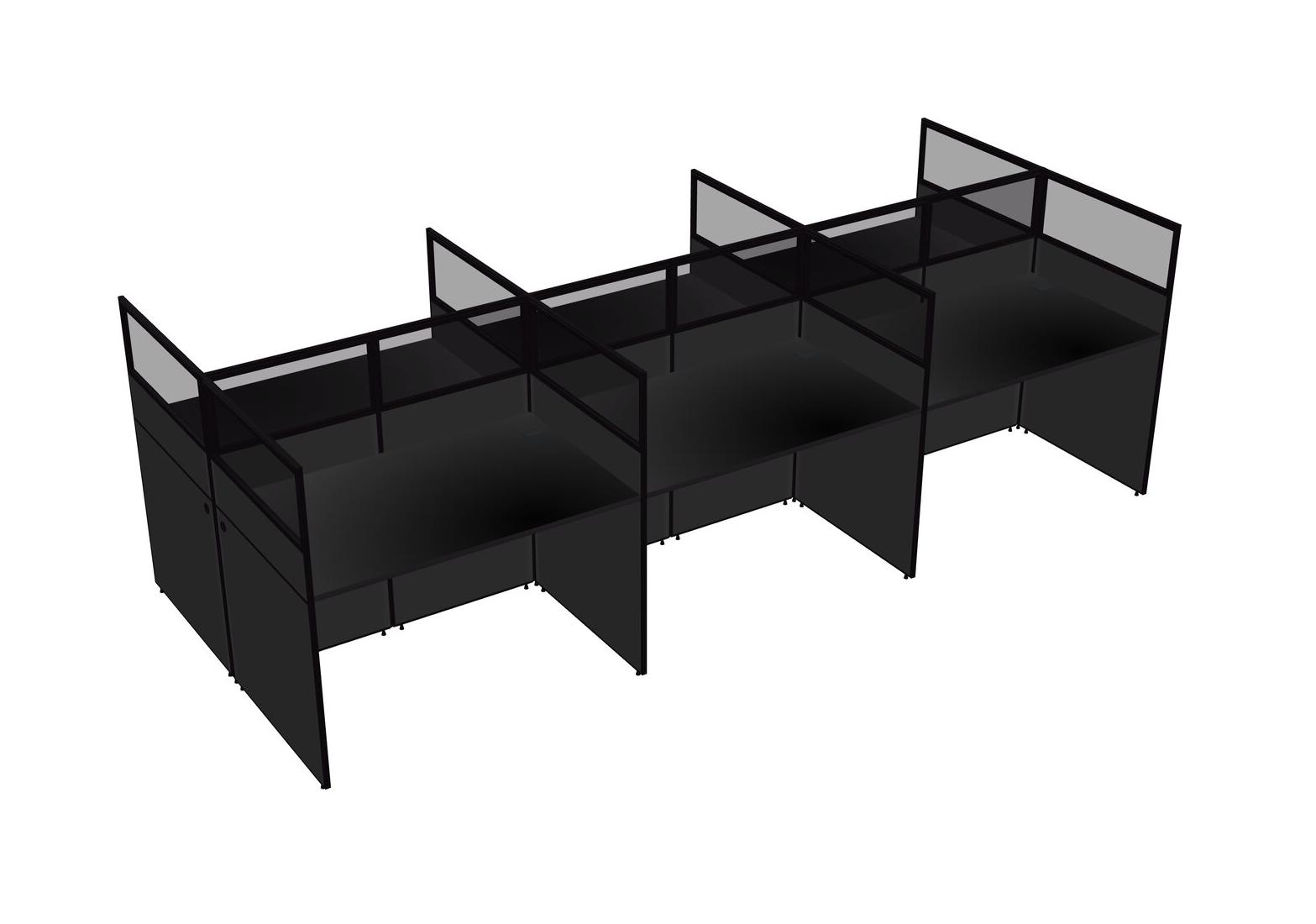 Black Shared Rectangular Office Cubicle Panel System For 6 Persons