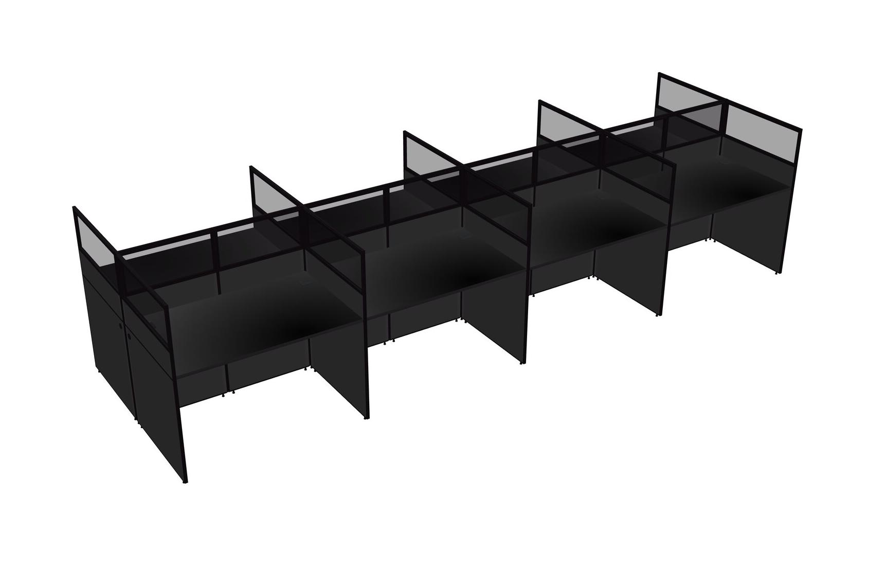 Black Shared Rectangular Office Cubicle Panel System For 8 Persons