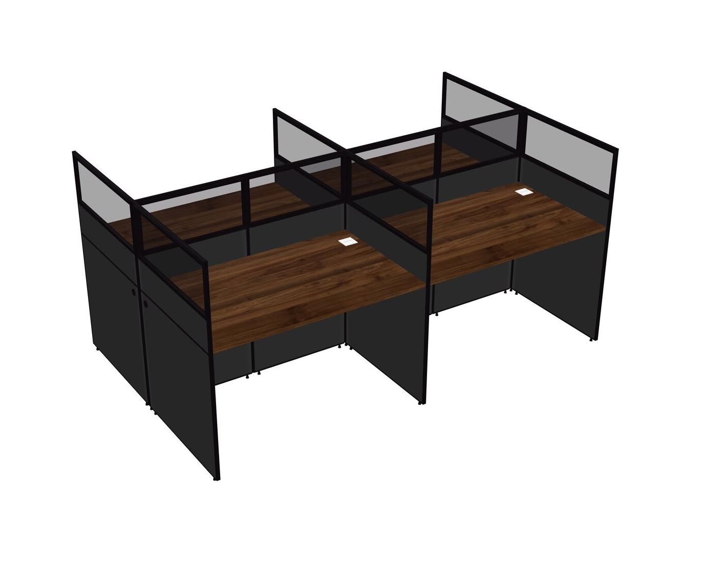 Columbia Walnut Shared Rectangular Office Cubicle Panel System For 4 Persons