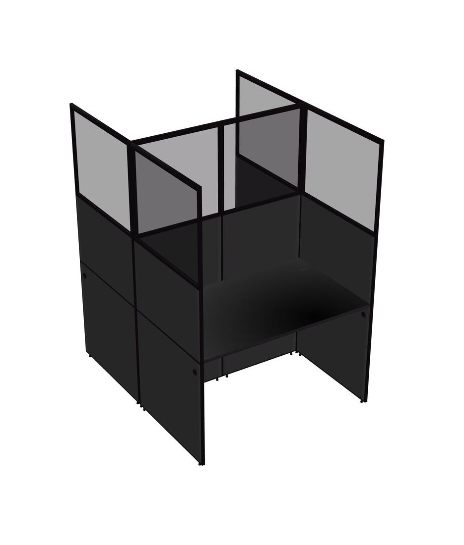 Black Shared Rectangular Office Cubicle Panel System For 2 Persons