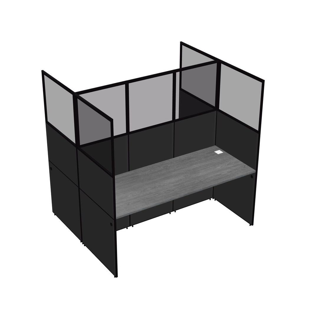 Grey Shared Rectangular Office Cubicle Panel System For 2 Persons