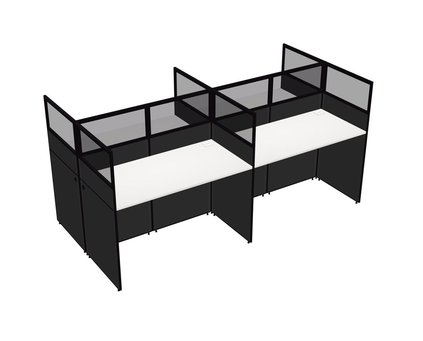 White Shared Rectangular Office Cubicle Panel System For 4 Persons