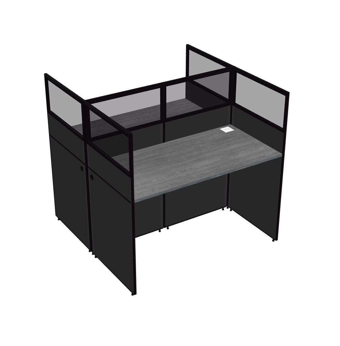 Grey Shared Rectangular Office Cubicle Panel System For 2 Persons