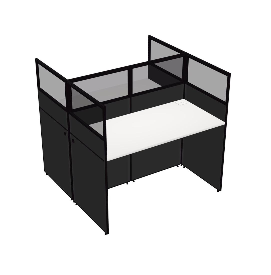 White Shared Rectangular Office Cubicle Panel System For 2 Persons
