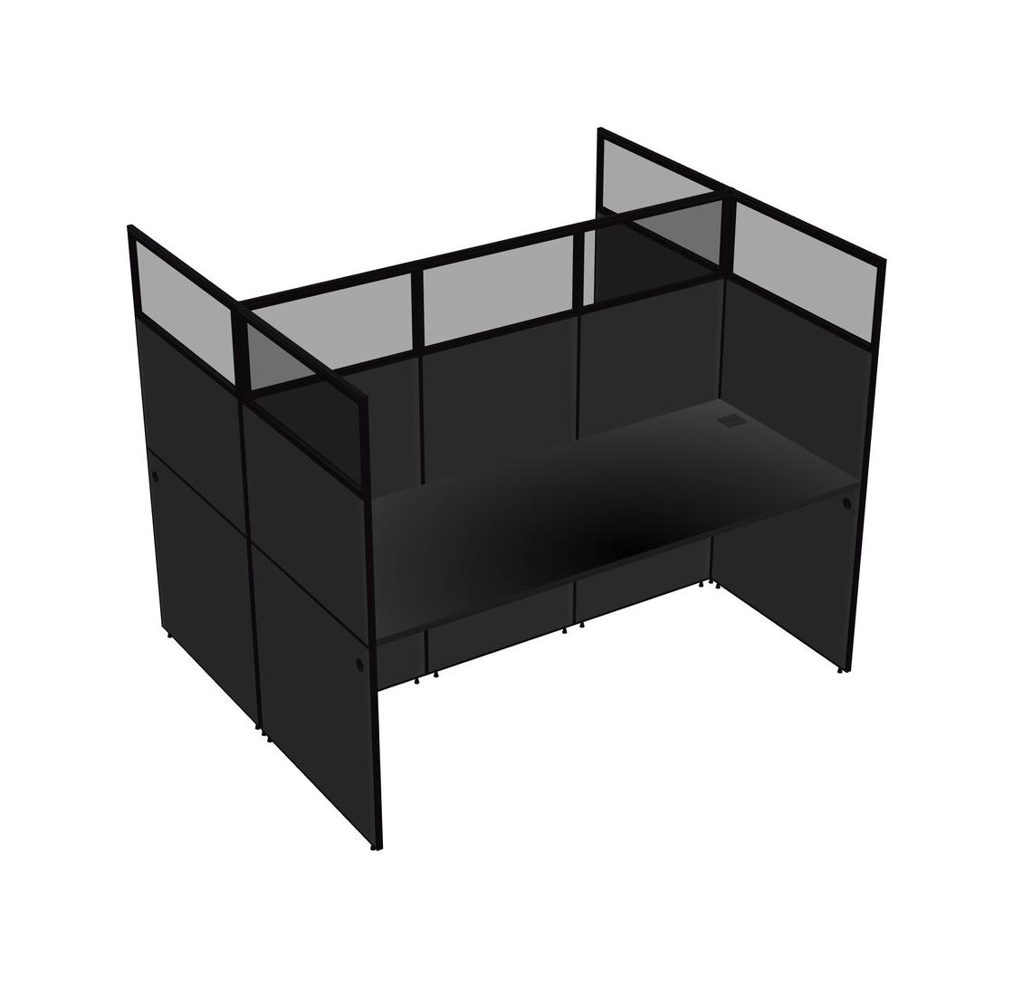 Black Shared Rectangular Office Cubicle Panel System For 2 Persons