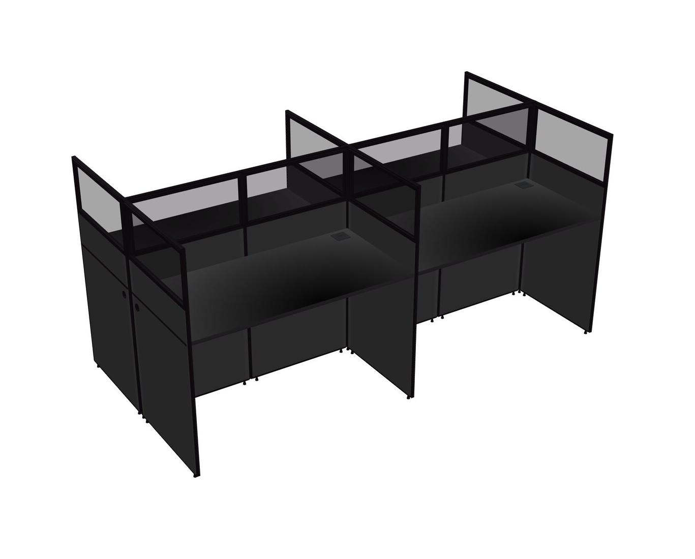 Black Shared Rectangular Office Cubicle Panel System For 4 Persons