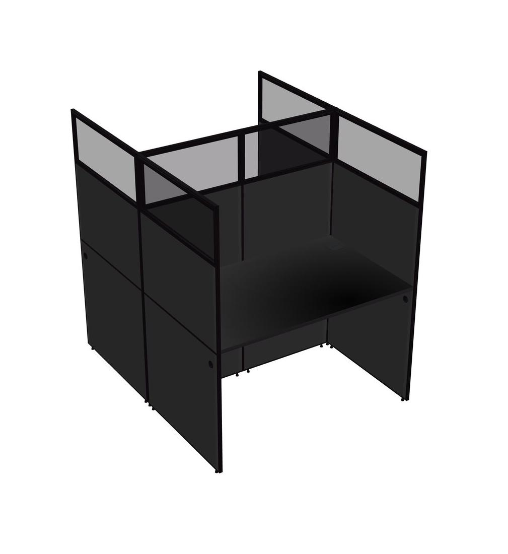Black Shared Rectangular Office Cubicle Panel System For 2 Persons