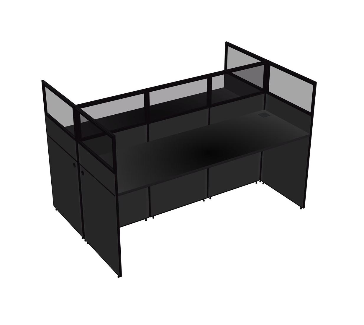 Black Shared Rectangular Office Cubicle Panel System For 2 Persons