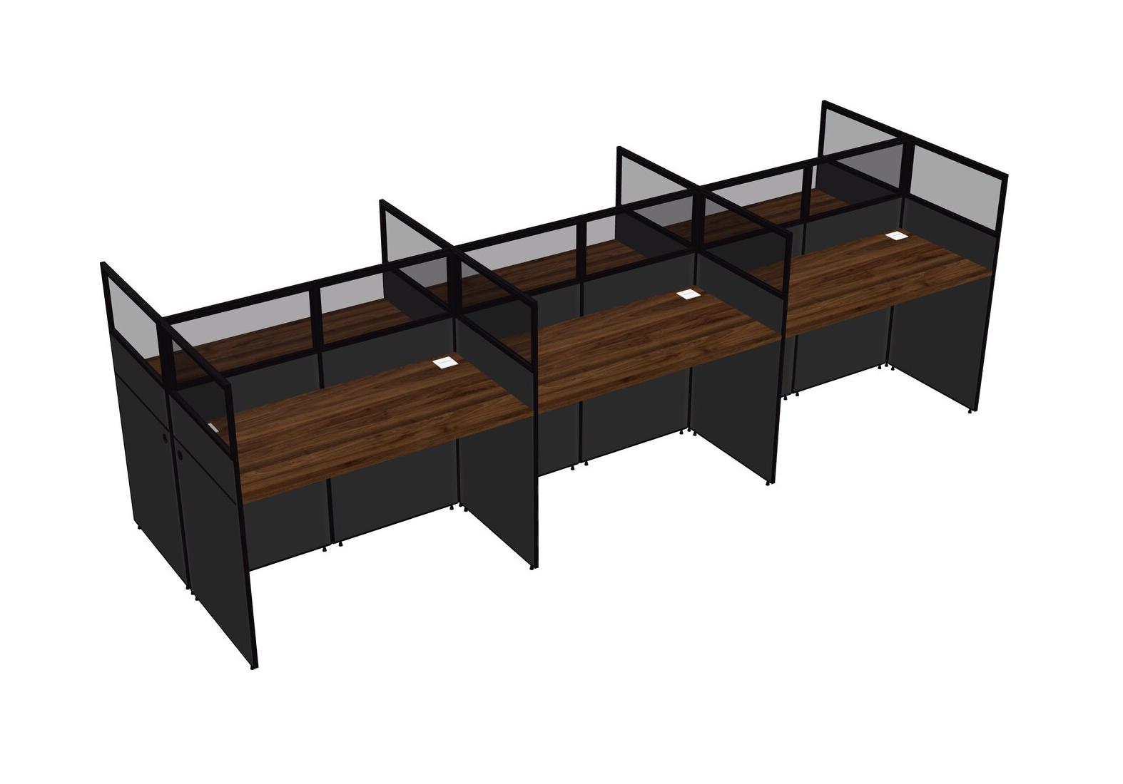 Columbia Walnut Shared Rectangular Office Cubicle Panel System For 6 Persons