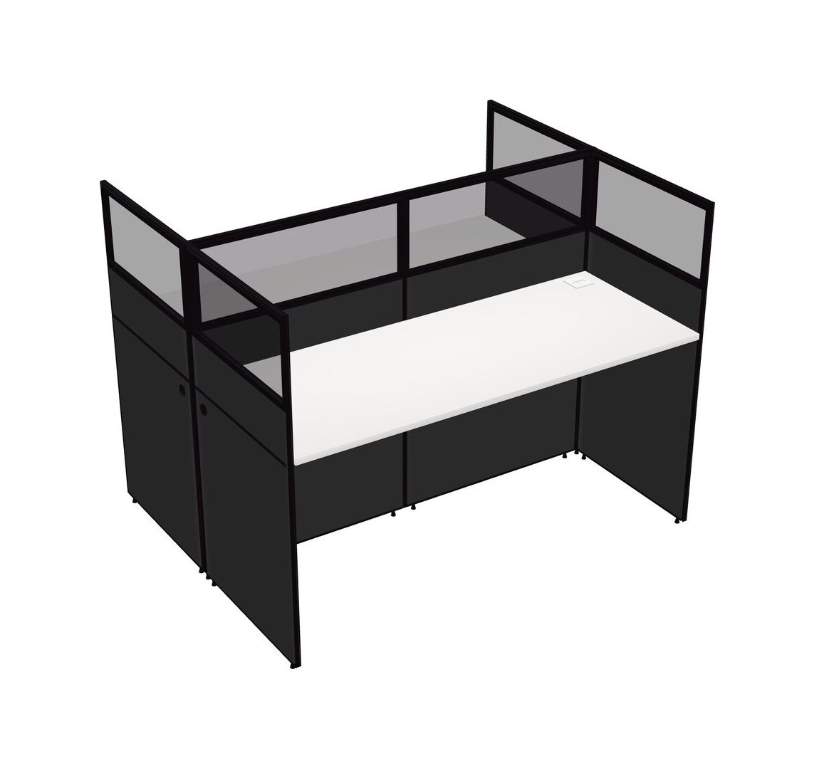 White Shared Rectangular Office Cubicle Panel System For 2 Persons