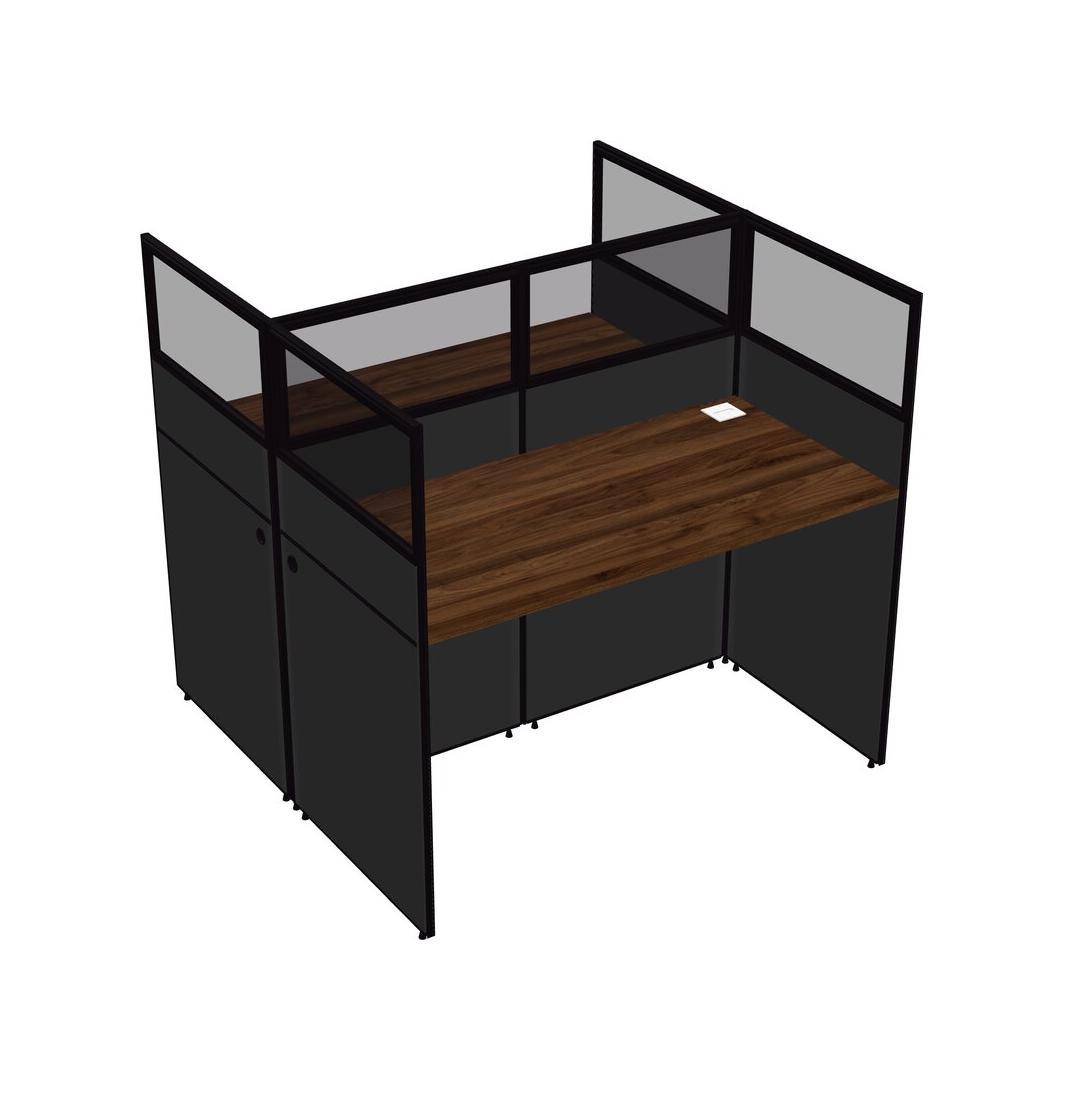 Columbia Walnut Shared Rectangular Office Cubicle Panel System For 2 Persons