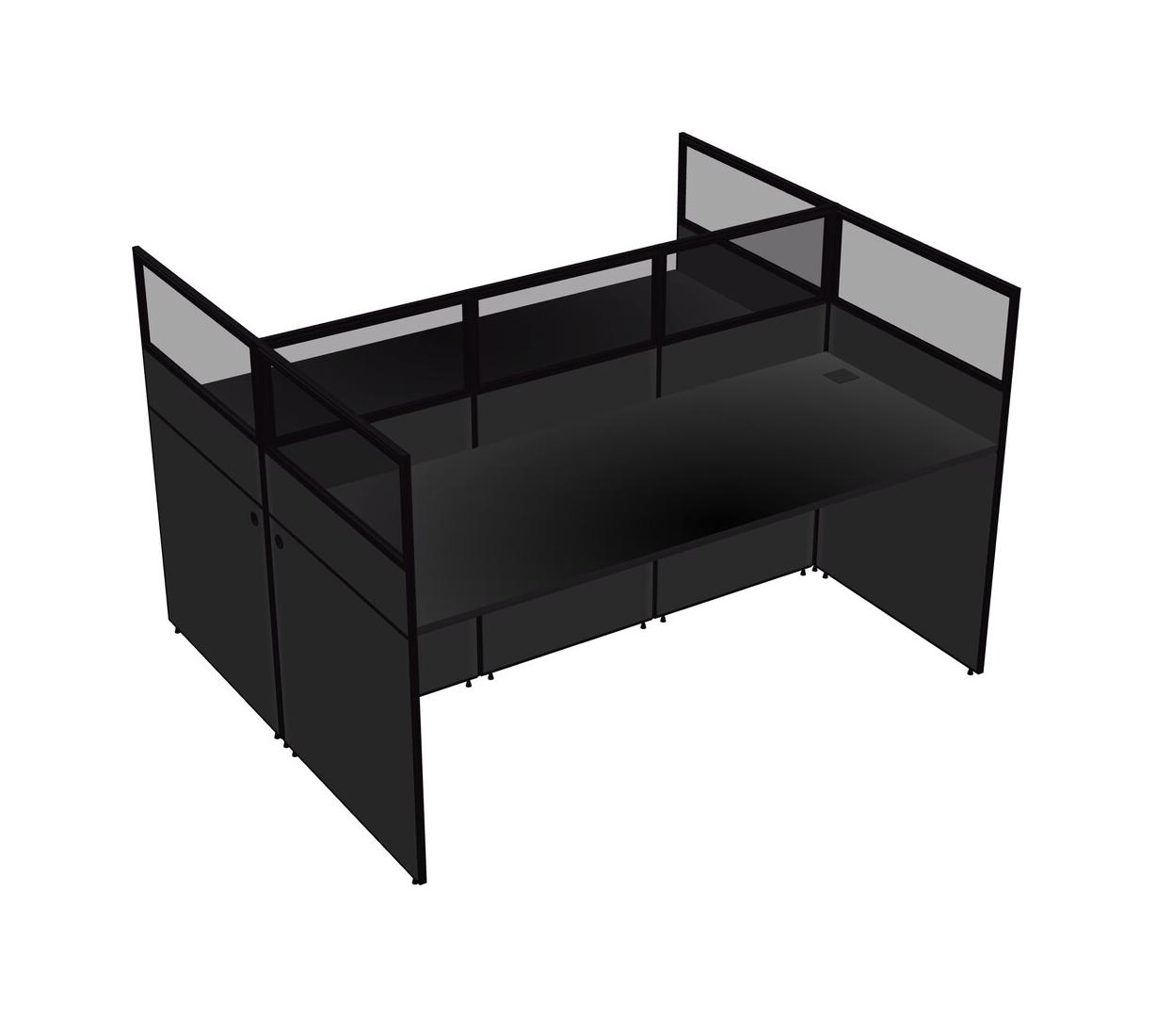 Black Shared Rectangular Office Cubicle Panel System For 2 Persons