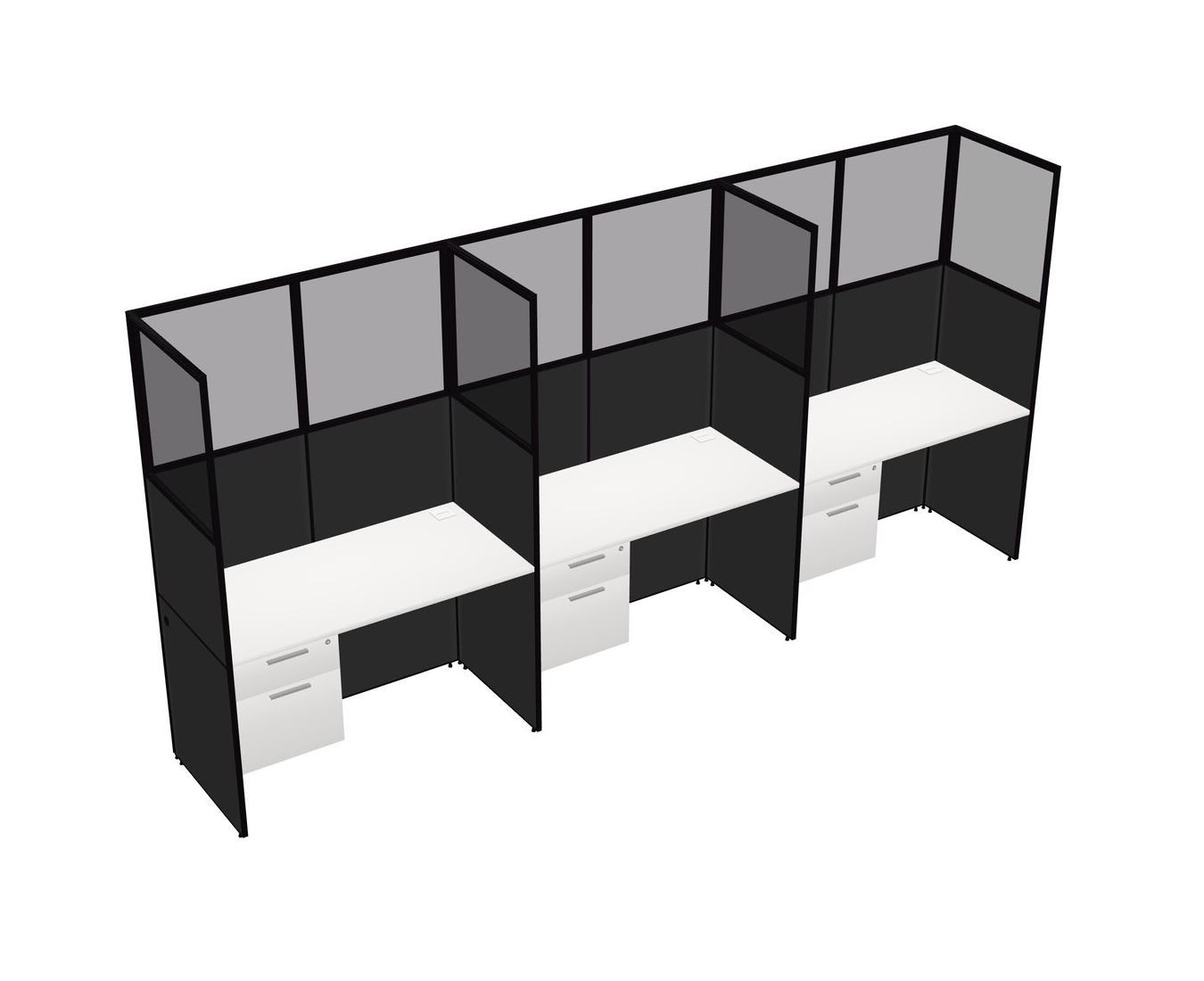 White Shared Rectangular Office Cubicle Panel System With Hanging Drawers For 3 Persons