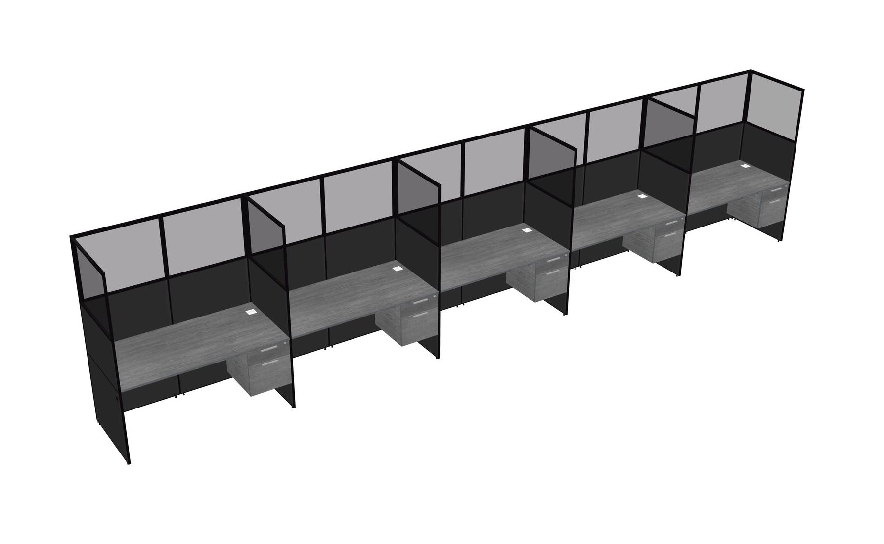 Grey Shared Rectangular Office Cubicle Panel System With Hanging Drawers For 5 Persons