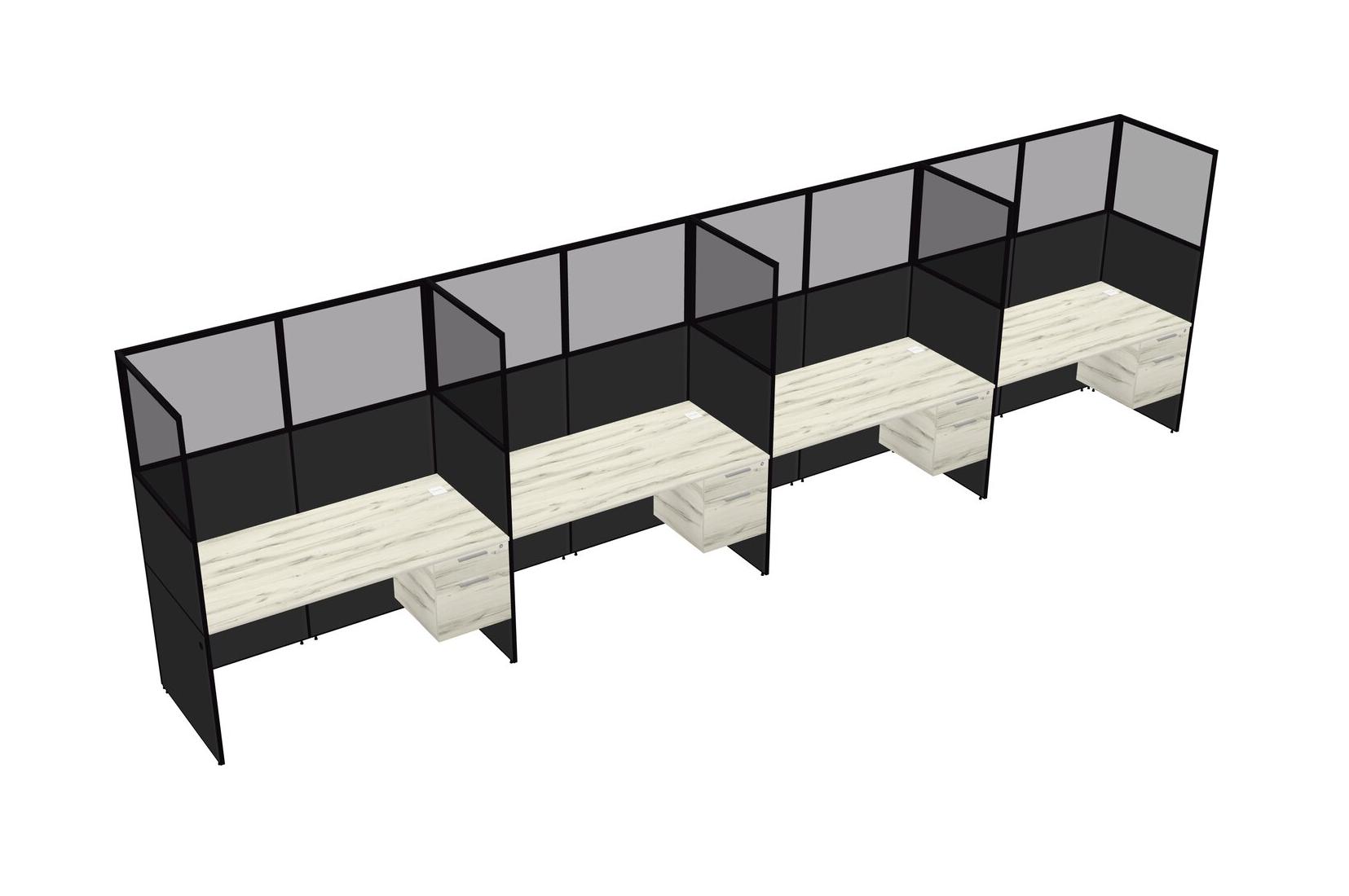 Heinne Holz Shared Rectangular Office Cubicle Panel System With Hanging Drawers For 4 Persons