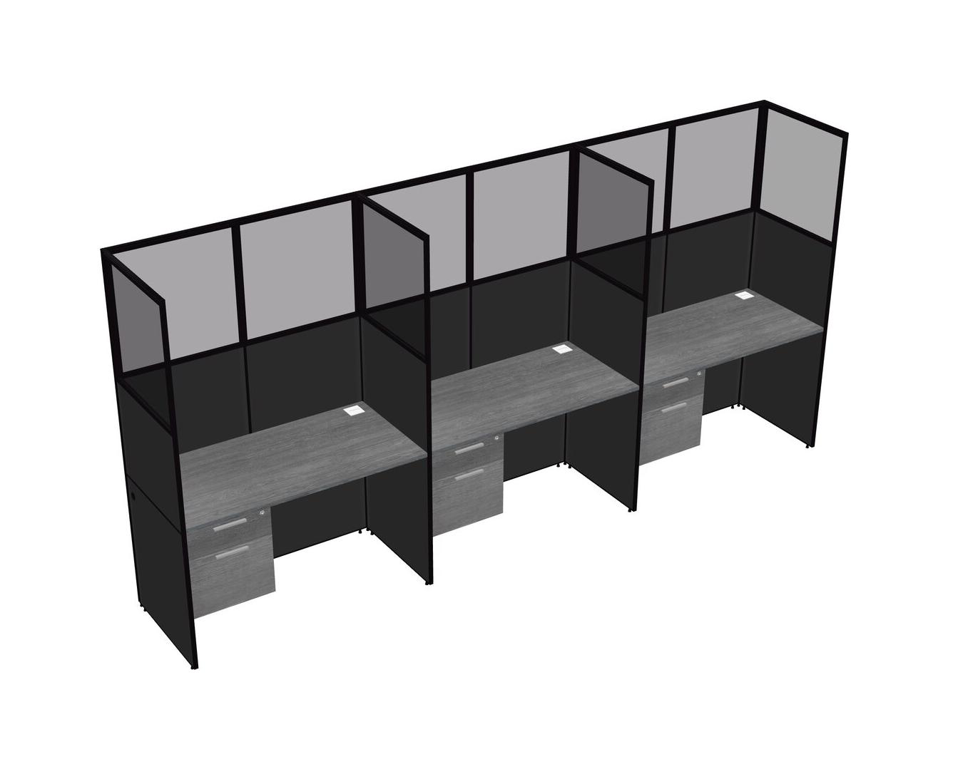 Grey Shared Rectangular Office Cubicle Panel System With Hanging Drawers For 3 Persons
