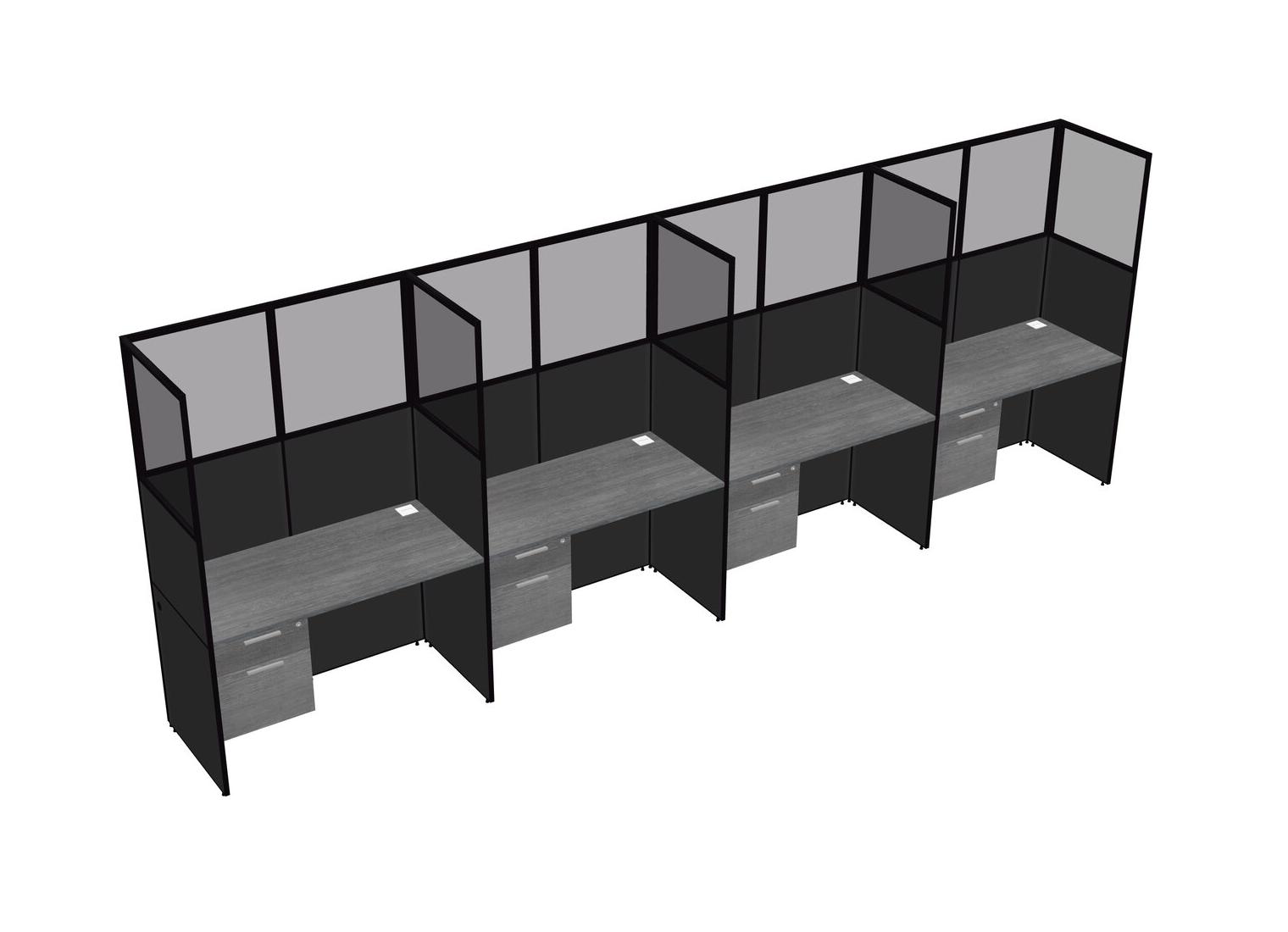 Grey Shared Rectangular Office Cubicle Panel System With Hanging Drawers For 4 Persons