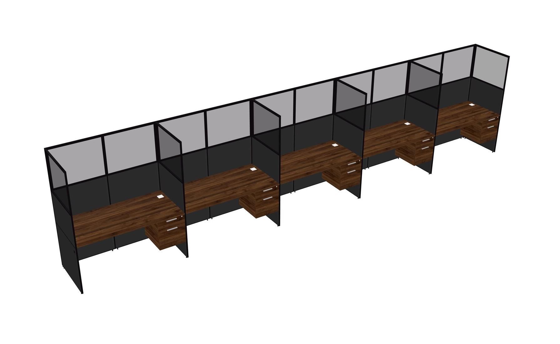 Columbia Walnut Shared Rectangular Office Cubicle Panel System With Hanging Drawers For 5 Persons